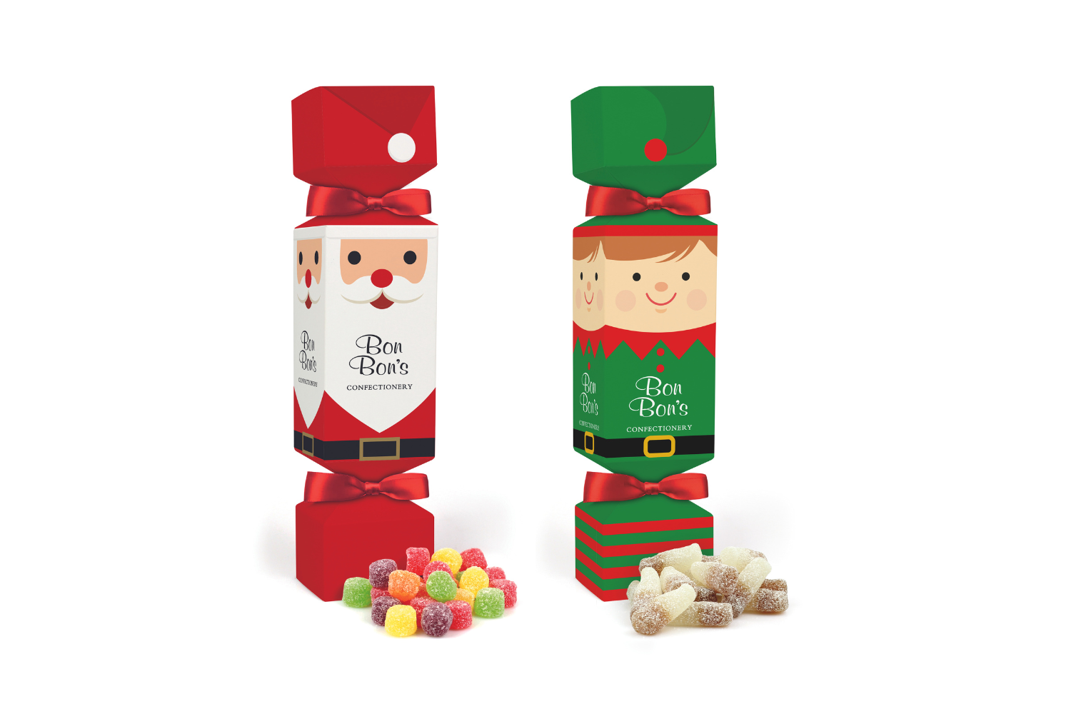 These delightful Christmas Crackers are packed with delicious, traditional sweets from Bon Bons. Choose from three fun festive designs: