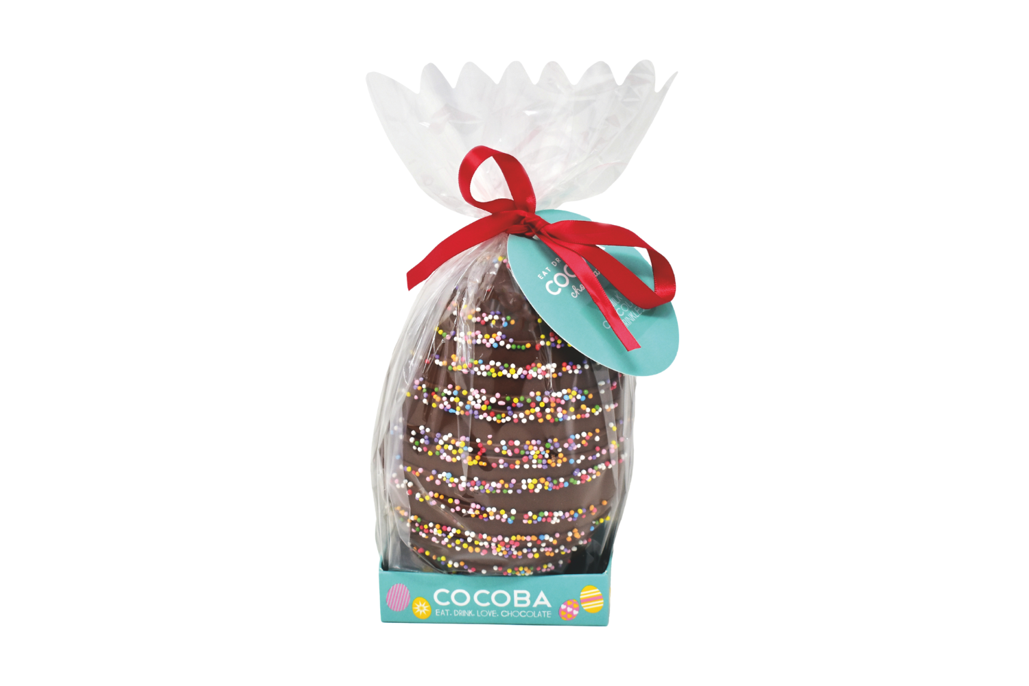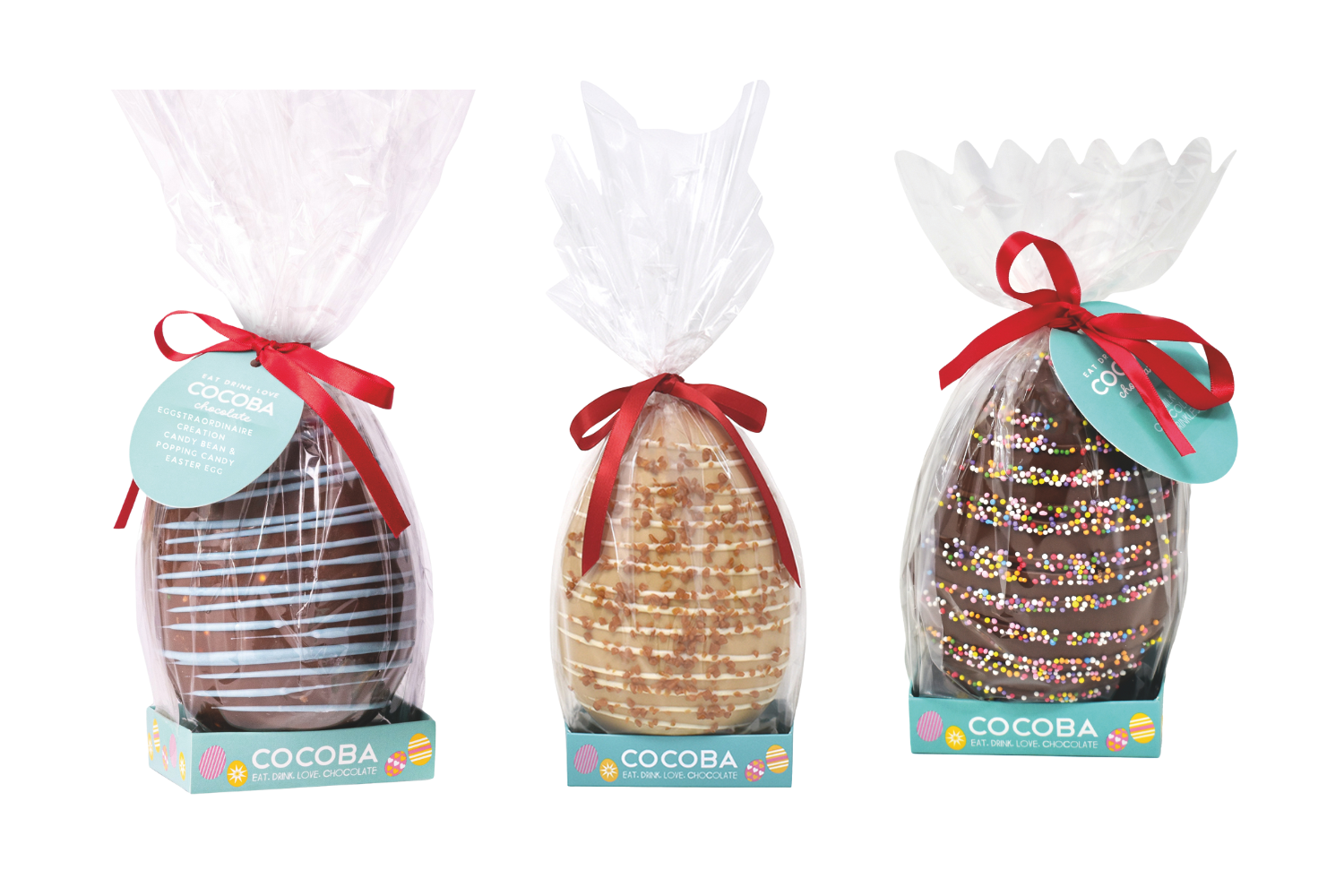 These luxurious Easter Eggs from Cocoba are hand decorated with a variety of delicious inclusions and wrapped in beautiful cellophane bags to show off the designs in all their glory!