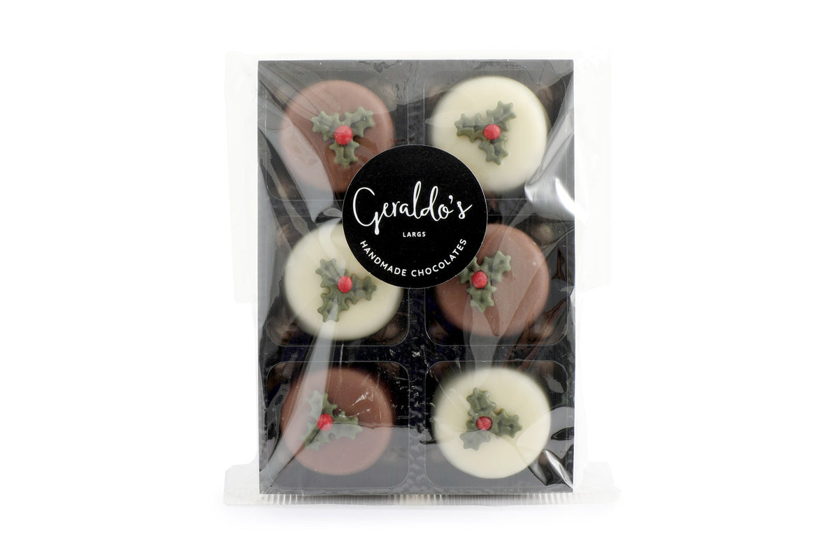 A delicious taster pack of milk and white chocolate Christmas caramels. The perfect festive treat or little gift.