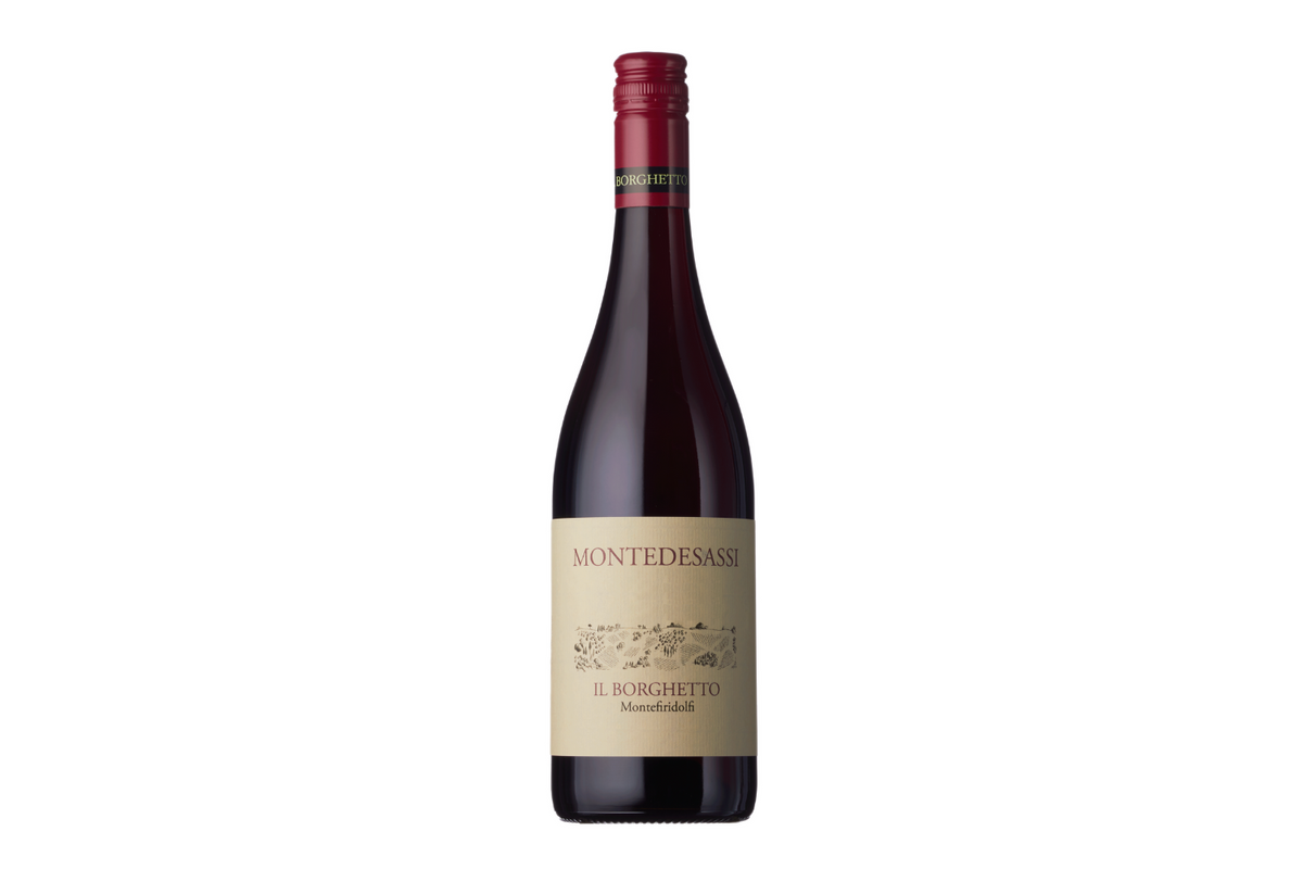 This powerful red is a mix of Il Borghetto's two pure Sangiovese grapes. Muscular tannins give the Montedassi great punch and drive, resulting in a perfumed yet savoury wine. Ideally served with traditional Bruschette, Bucatino all Matriciana.