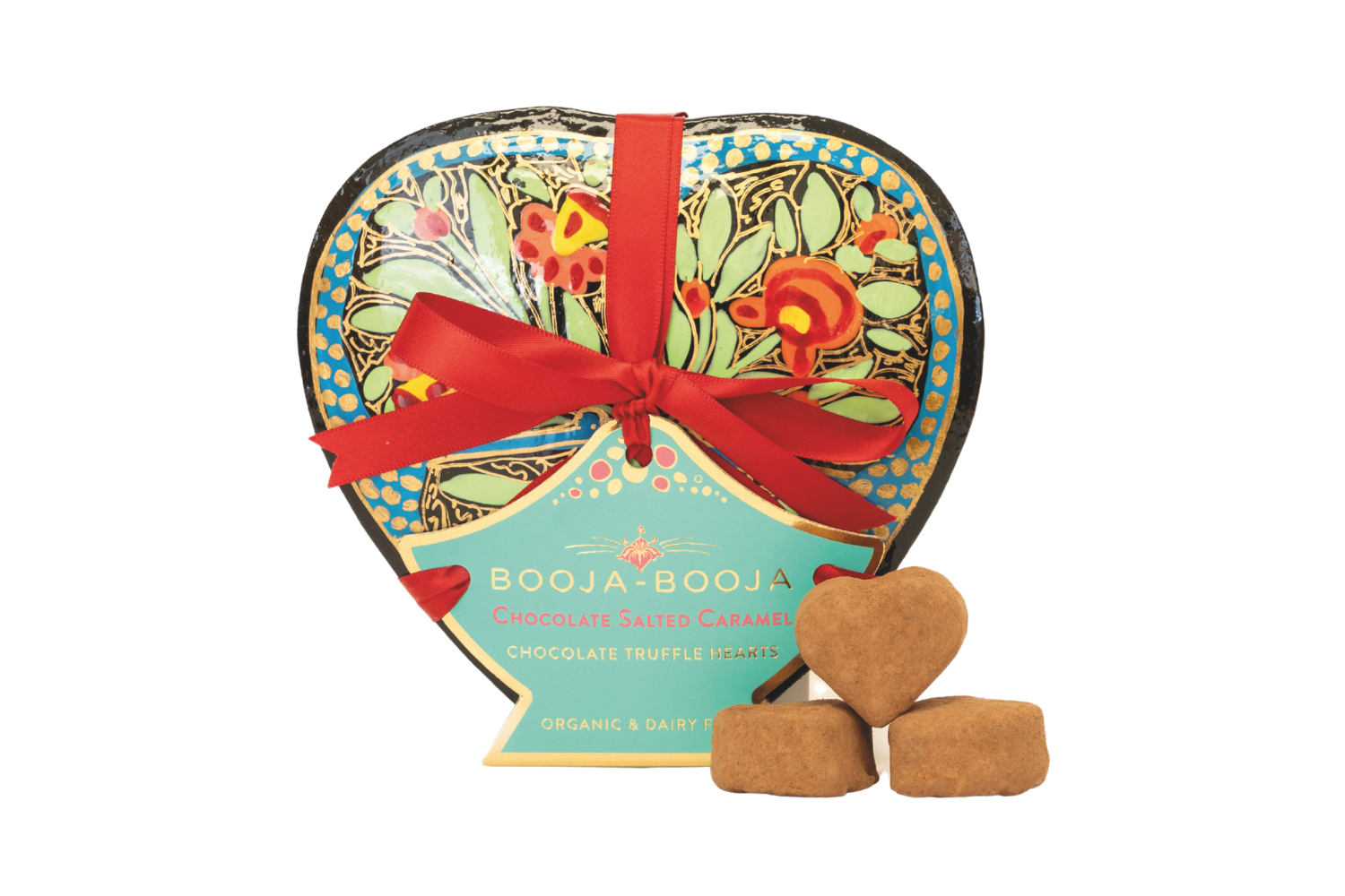 These exquisite heart-shaped gift boxes are filled with delicious, organic truffles from Booja-Booja. Choose from Fine de Champagne or salted caramel for your Valentine.