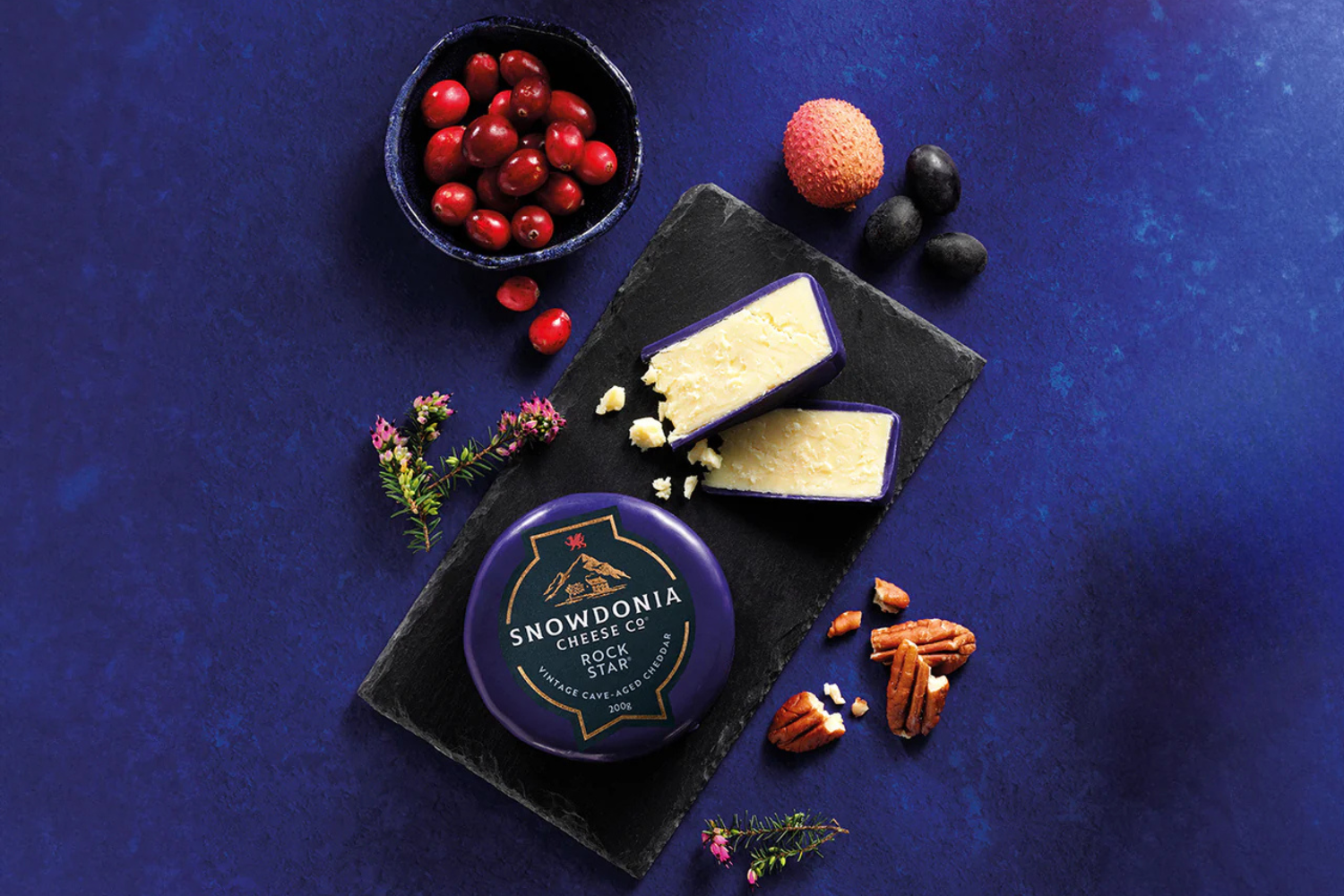 Rock Star - Rock Star, Snowdonia Cheese Co.'s debut vintage cave-aged Cheddar, completes its 18-month maturation inside Welsh slate caverns surrounded by the mountains of Snowdonia. With a hint of sweetness and a long savoury tang, Rock Star’s complex flavours are as deep as the historical caverns it’s aged in.