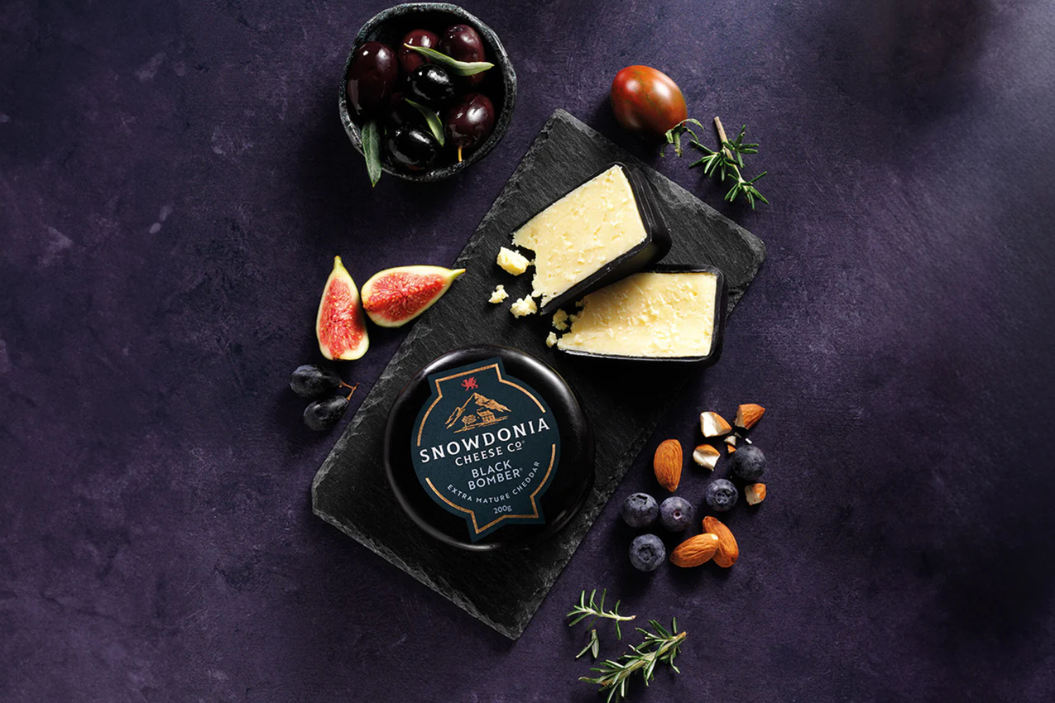 Black Bomber - The cheese that started it all. Still crafted using their original recipe and wrapped in a wax as dark as Snowdonia’s night skies, the multi-award-winning Black Bomber extra mature Cheddar combines amazing creaminess with intense, deeply savoury flavour notes. Demandingly moreish.