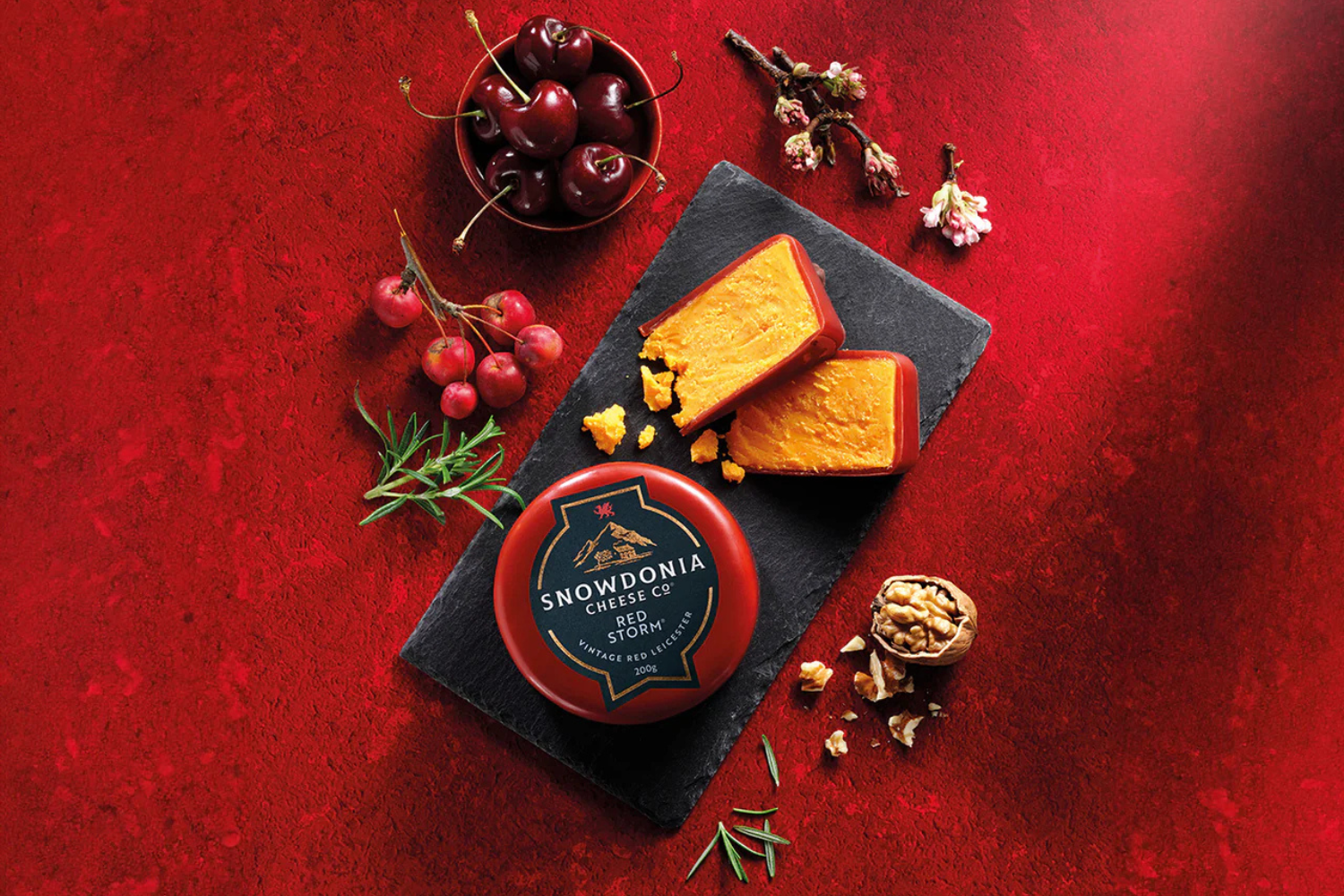 Red Storm (Red Leicester) - Intense, nutty and deliciously rich. Complex, refined and beautifully balanced with sweet caramel notes. Red Storm, expertly aged for 18 months, is elegantly adorned in a deep red wax that echoes the twilight skies above the peaks of Snowdonia.