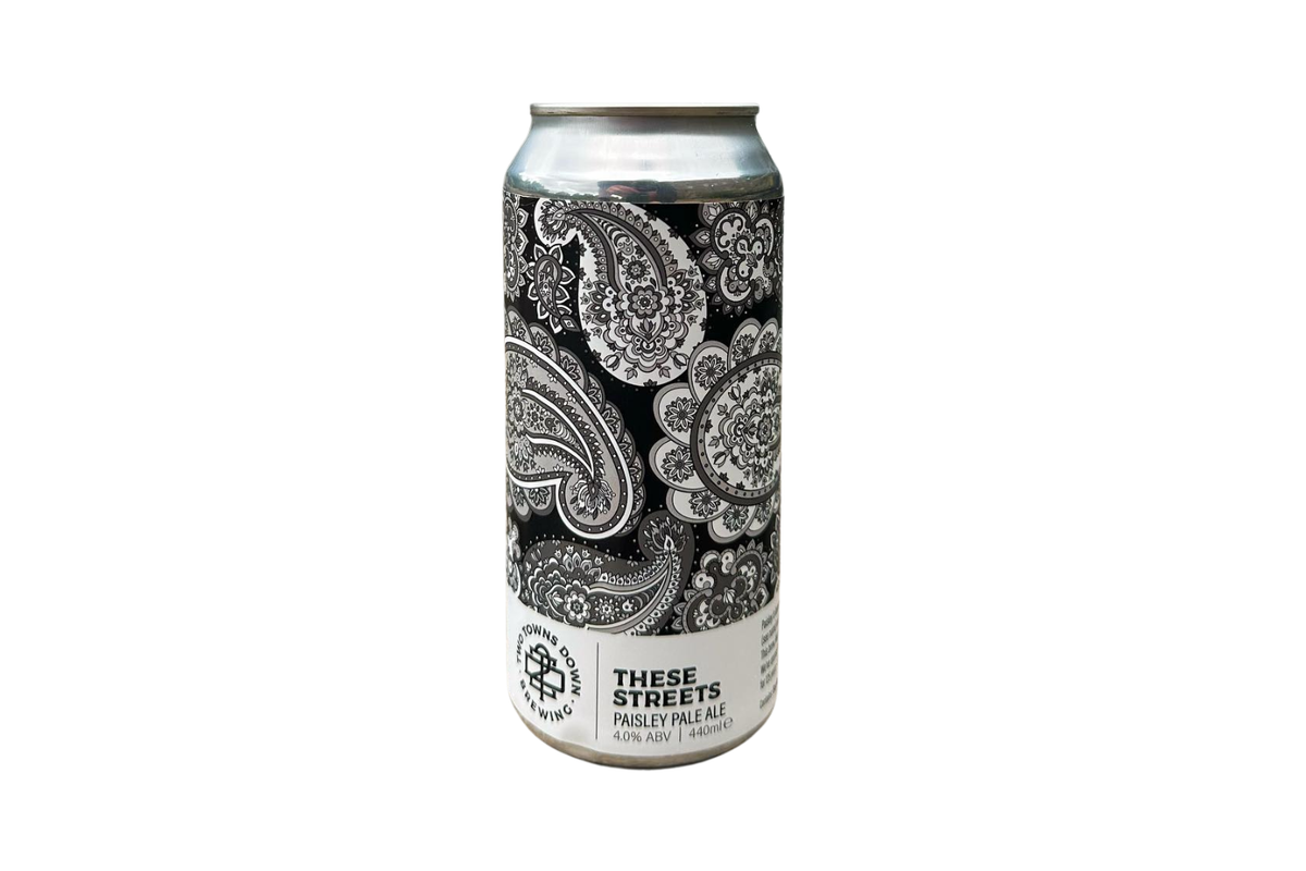 These Streets Pale Ale 4% 440ml VEGAN - This beer, much like the song, is an ode to Paisley, especially now that Two Towns Down have opened the first brewery in Paisley in 125 years! It's a light base beer, with neutral yeast and a soft mouthfeel that allows the showcased hops to shine.