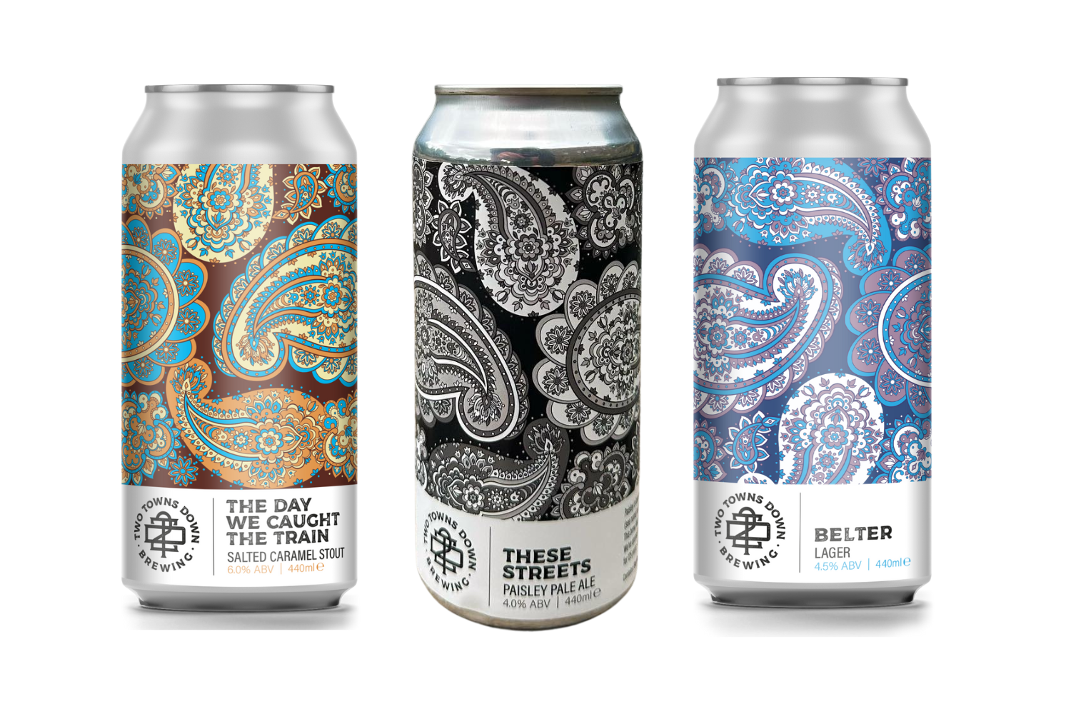The dream was to eventually open a brewery and taproom in his hometown of Paisley. Two Towns Down was to become the first brewery in Paisley for 125 years – since the Sacell Brewery unfortunately ceased trading. Paisley is at the heart of the brand, as evidenced by the beautiful label designs!