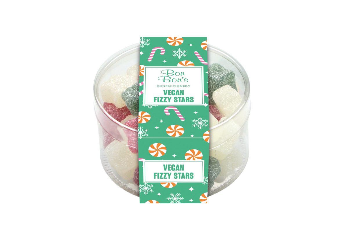 This delightful Christmas-themed gift tub is full of vegan fizzy star sweets. Perfect as a wee token, or for a stocking filler.