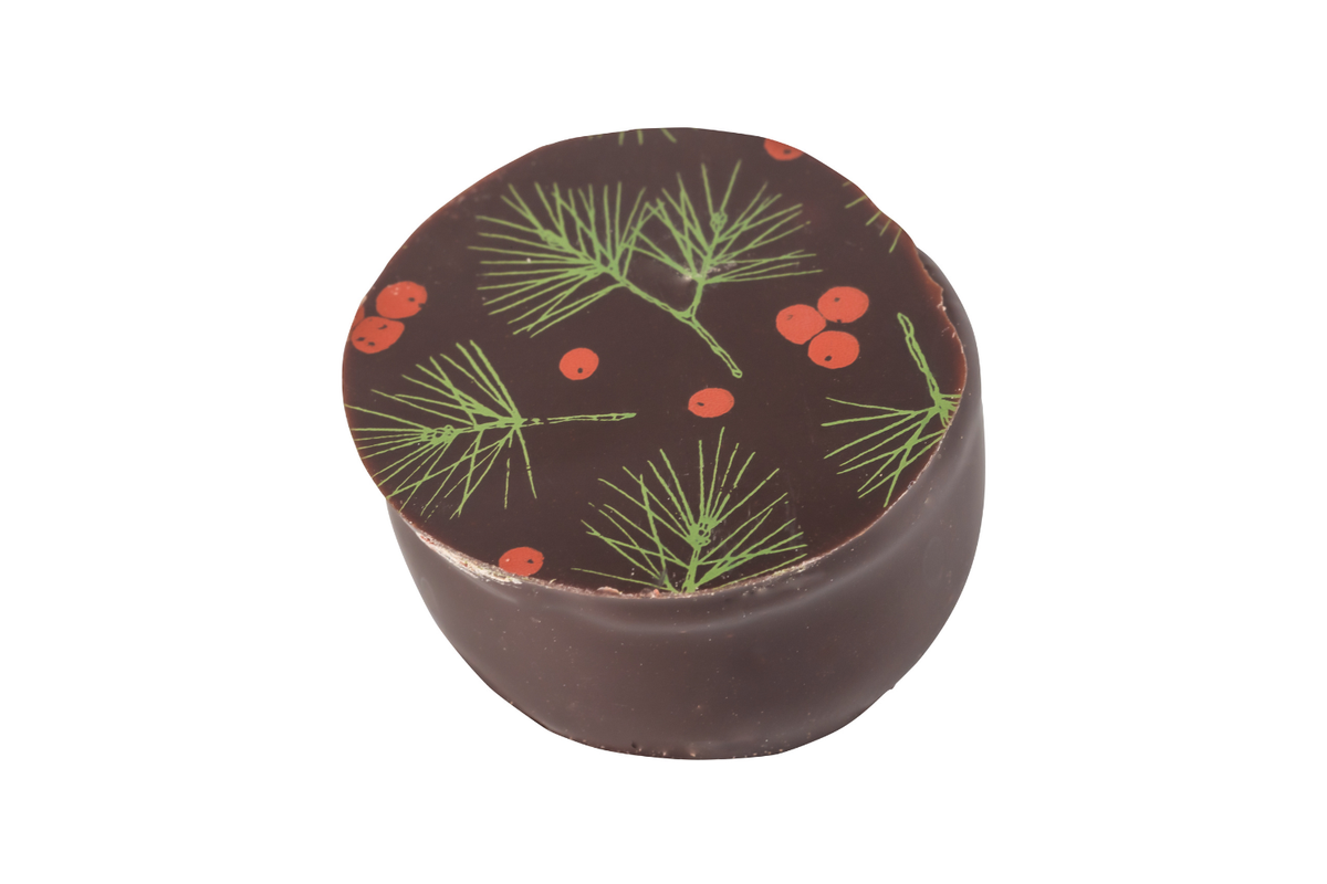 Dark chocolate (Sugar, Cocoa mass, Cocoa butter, Emulsifier (SOYA lecithin), Natural vanilla), Sugar, BUTTER, Whisky 3.4%, Glucose syrup, Vegetable oil (Palm), Lemon oil, Cinnamon, Print design (Vegetable fat (Palm)), Colourings (E172, E133).